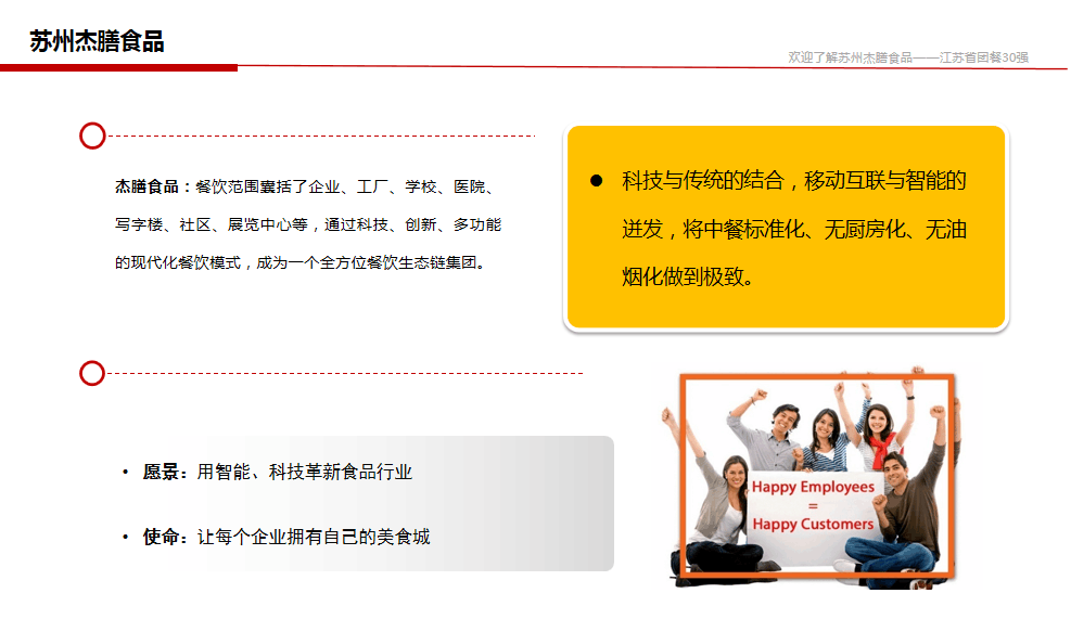 其實,餐飲配送迎合互聯網時代不斷創新升級的最大好處就是更好地為企事業單位客戶服務。作為一家專業的、實力出眾的食堂承包公司,杰膳可以為客戶減少整體的資金投入,并減輕食堂管理的困難度,與此同時還能保證食材的新鮮度,絕對是一個一舉多得的食堂管理方案。所以說,不管是傳統企事業單位還是高科技企業,都可以放心的選擇杰膳。